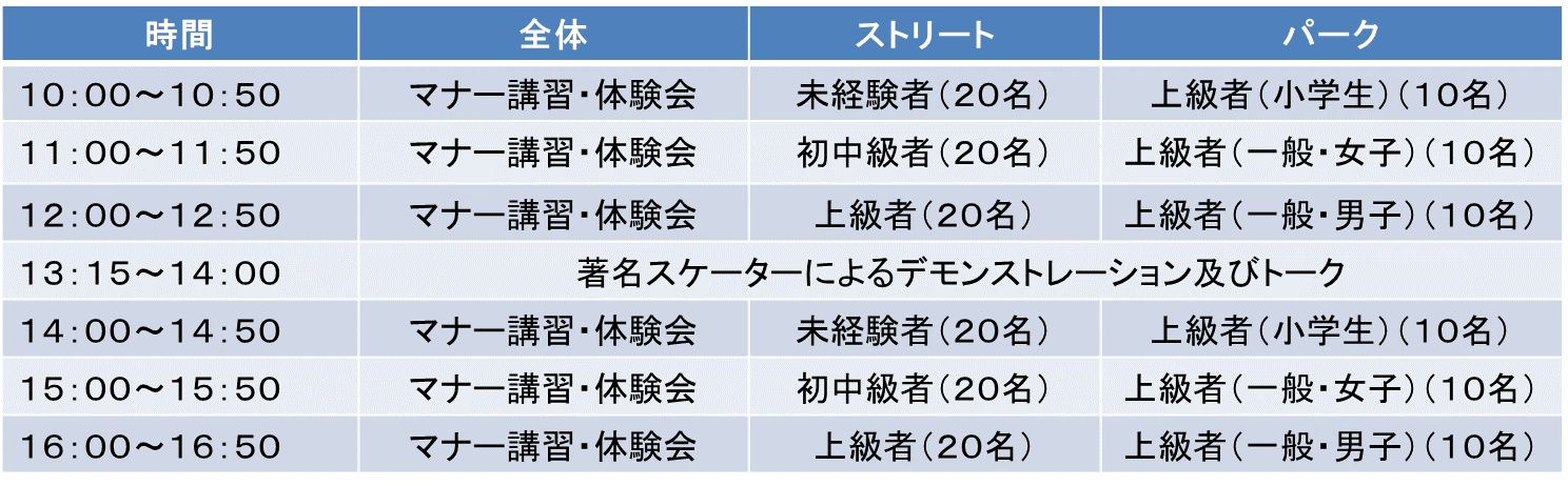 また、サンダルでの滑走はお控えいただき、体験会参加の際は必ず靴を着用ください。
