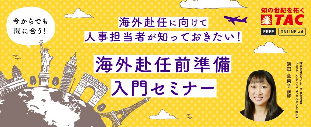 今回は「海外赴任前準備 入門セミナー」と題して、海外赴任予定者や出張者、その支援者である人事の方向けのセミナーをご提供します。ビジネスにおけるミッションは人それぞれで異なりますが、本セミナーは海外赴任や出張時に必要最低限、配慮しなければならない知識を身につけられるような内容となっています。