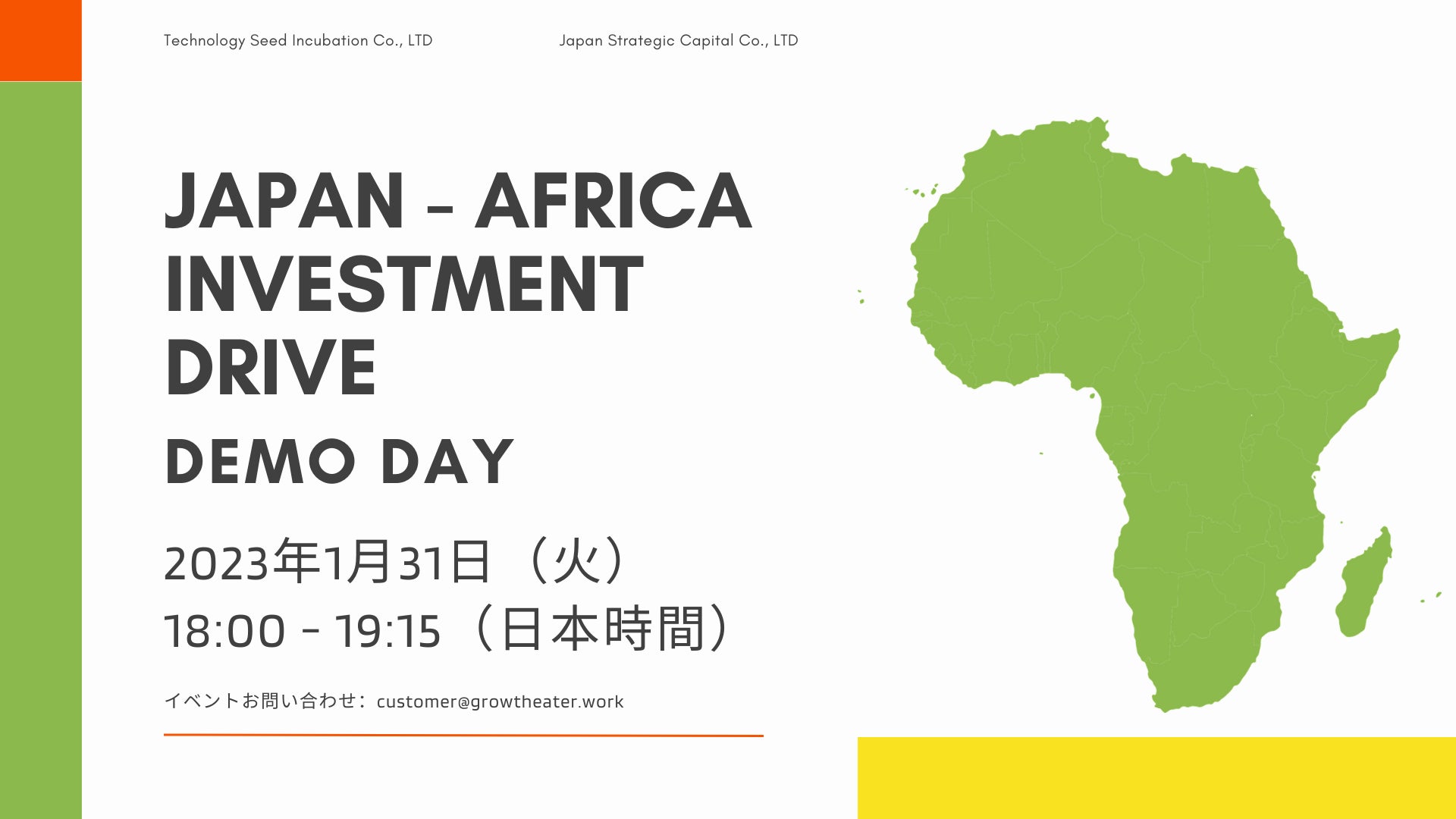 500社の中から今注目のアフリカスタートアップ8社が集まる「Japan Africa Investment Drive デモデー」を開催。ーアフリカ最新トレンドと海外M&AはGrowtheatherー