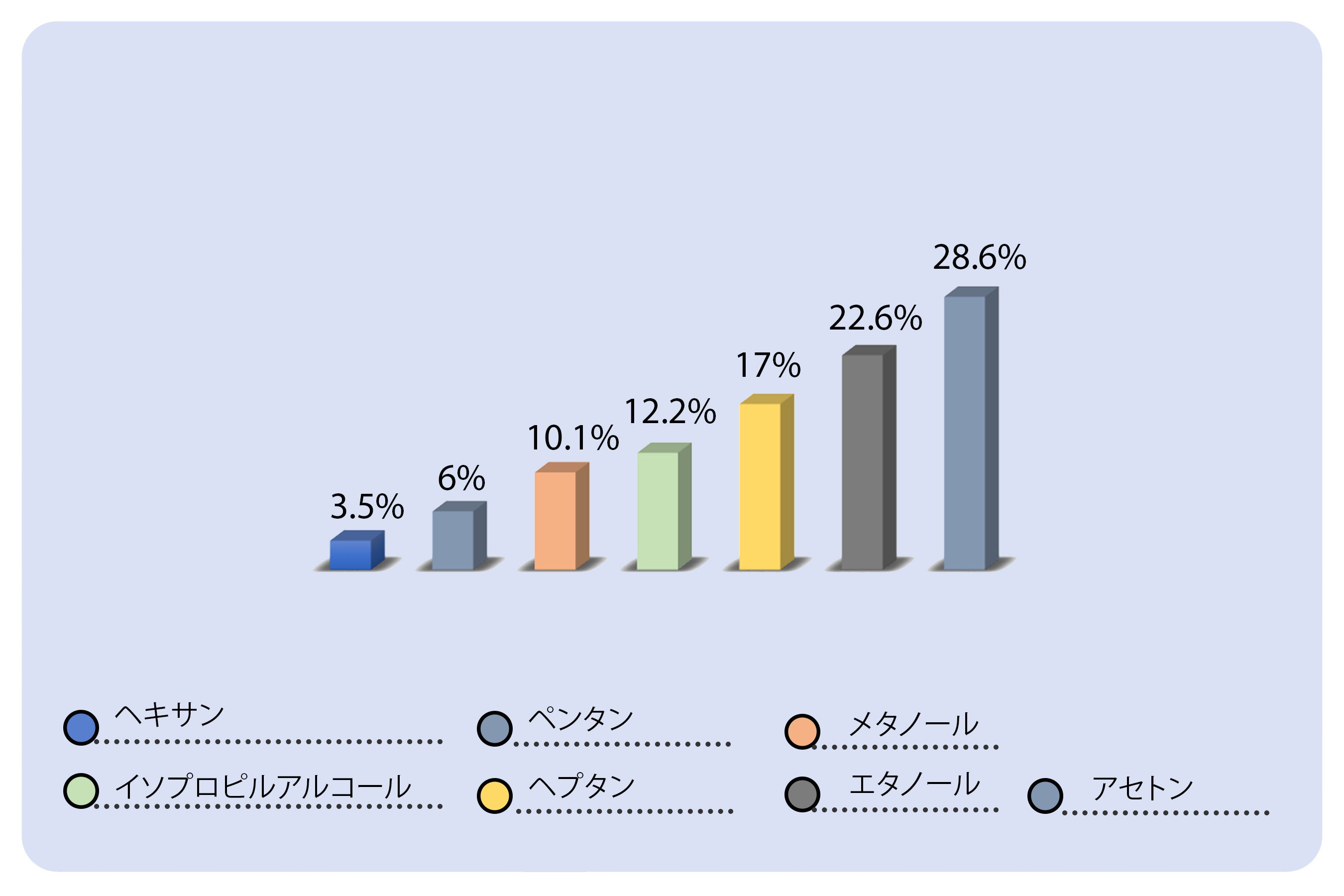 種類別では、アセトン、エタノール、ヘプタン、ヘキサン、イソプロピルアルコール、メタノール、ペンタンに分類されます。これらの中で、アセトンは2022年に高いセグメントシェアを保持しました。