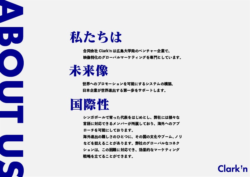 [合同会社Clark’n] ソーシャルメディアを使った海外へのマーケティングを専門とし、海外進出をサポート致します。