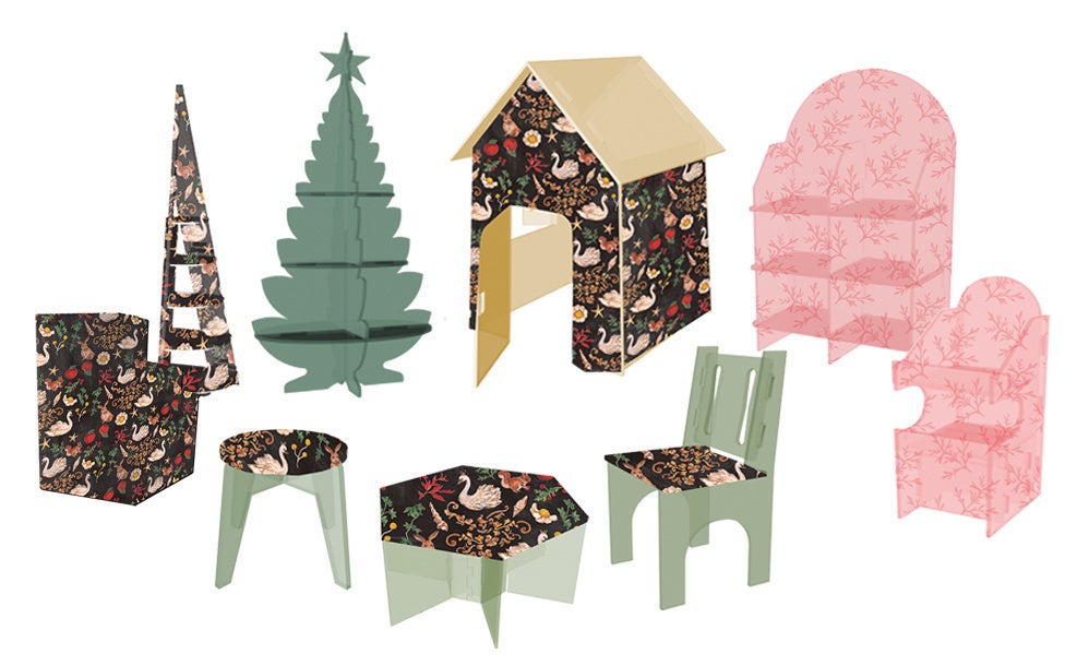 サスティナブル素材(強化ダンボール)にイラストをプリントした「什器」