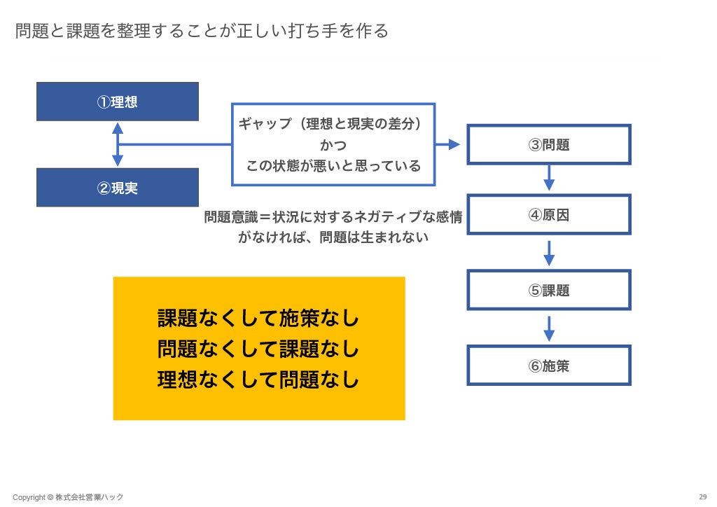 「ニーズにあった提案」をするために重要なのが、その原因を引き起こしている理由まで特定すること。「売り上げが伸びない」なら、「なぜ売り上げが伸びないのか」という理由までつかむことにより、お客様が喜ぶ提案を行うことが容易になります。