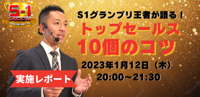 2022年11月19日にセールスギルド株式会社が主催する、日本最大級の営業の大会「S1グランプリ」が開催されました。この大会に弊社代表笹田が出場し、優勝したことをきっかけにこの共催ウェビナーの企画がスタート。テーマであるトップセールスになるためのコツについてはもちろんのこと、「S1グランプリ」内で語りきれなかったテレアポのコツなどについても解説する勉強会となりました。