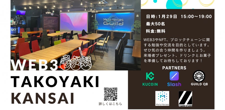 Social Finance Limitedの運営するGuildQBはこの度、WEB3 TAKOYAKI KANSAIが主催する「Web3/NFT/初心者向け交流&勉強会」に協賛することを発表いたします。