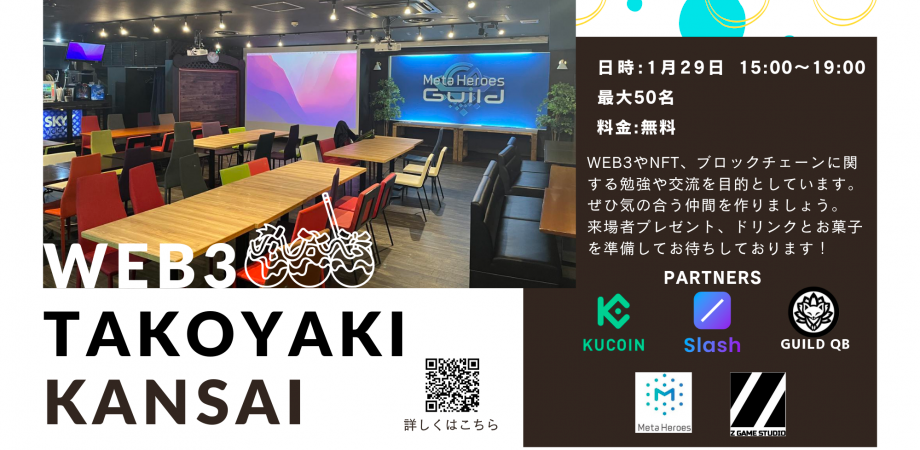 しかしNFTゲームは参入障壁が高いことが初心者の参加を阻んでいます。そのためWEB3 TAKOYAKI KANSAIが主催する「Web3/NFT/初心者向け交流&勉強会」の理念に共感し、今回のイベントに協賛する運びとなりました。