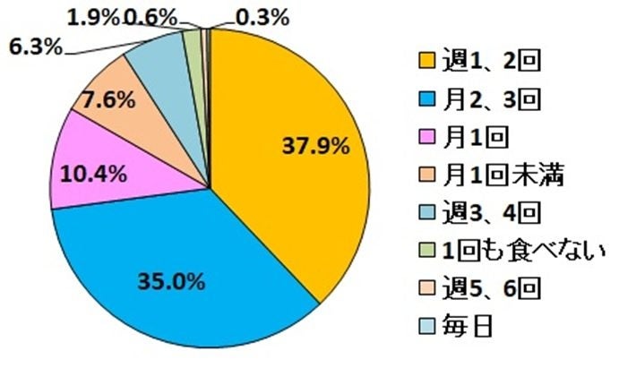 お鍋を食べる頻度は「週1、2回」(37.9%)、「月2、3回」が(35.0%)の合計が全体の7割以上を占めています。