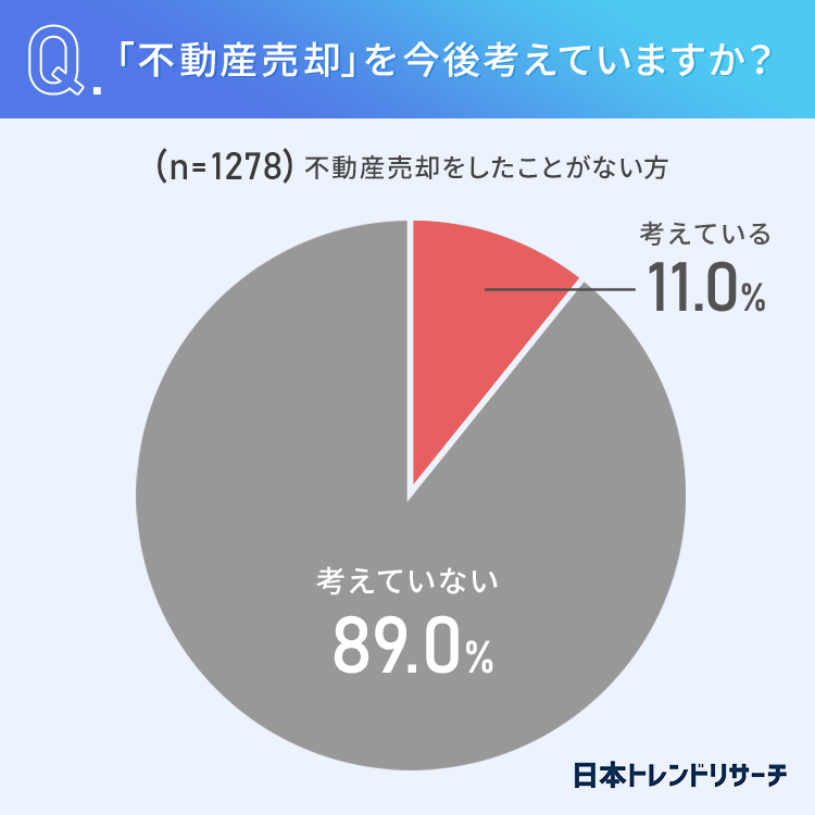 11%の方が、今後不動産売却を「考えている」と回答しました。