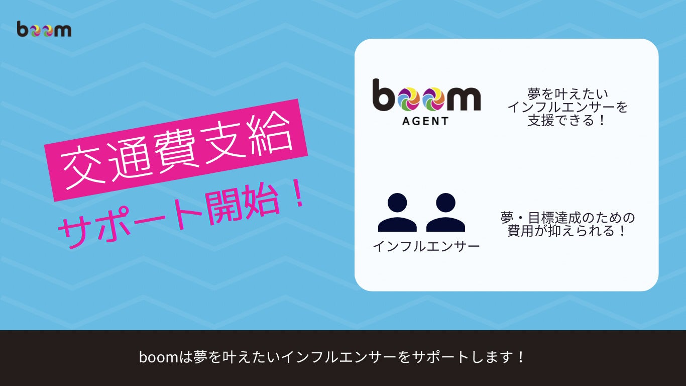 当社主催のオーディション合格者には交通費をboomから支給し、更なる挑戦の機会を提供していきます。この制度によって、住む場所による制約を取り払い挑戦のハードルを下げることでライブストリーミング業界におけるオーディションを更に盛り上げてまいります。