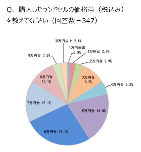 購入したランドセルの価格帯は、6万円台が最多の27.1%、ついで5万円台(19.9%)、7万円台(16.1%)。主な出資者は、「パパとママ」「パパ側の祖父母」「ママ側の祖父母」がほぼ並ぶ形でした。