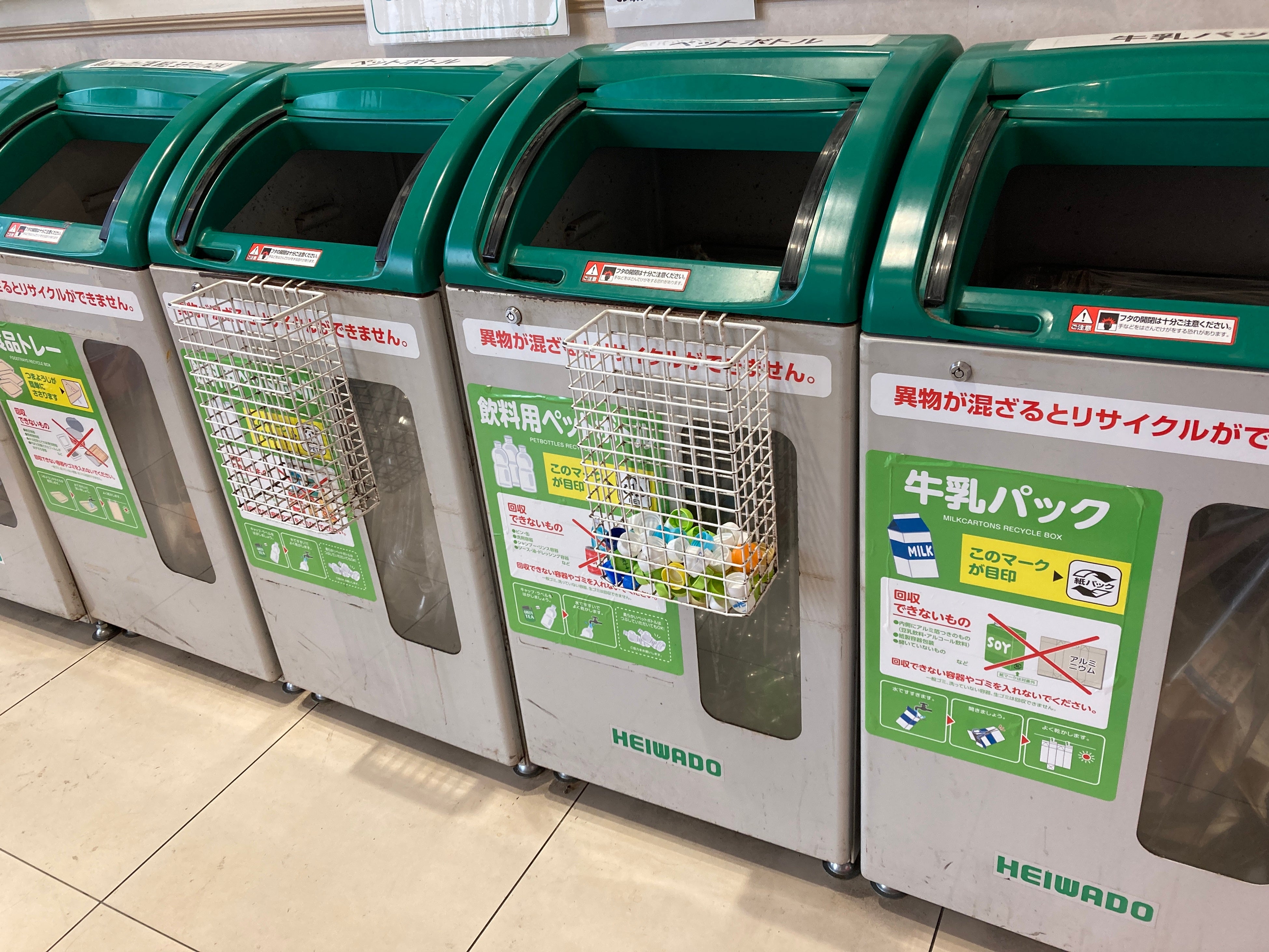 食品トレー、透明トレー、牛乳パック、ペットボトルを回収し、リサイクルします。