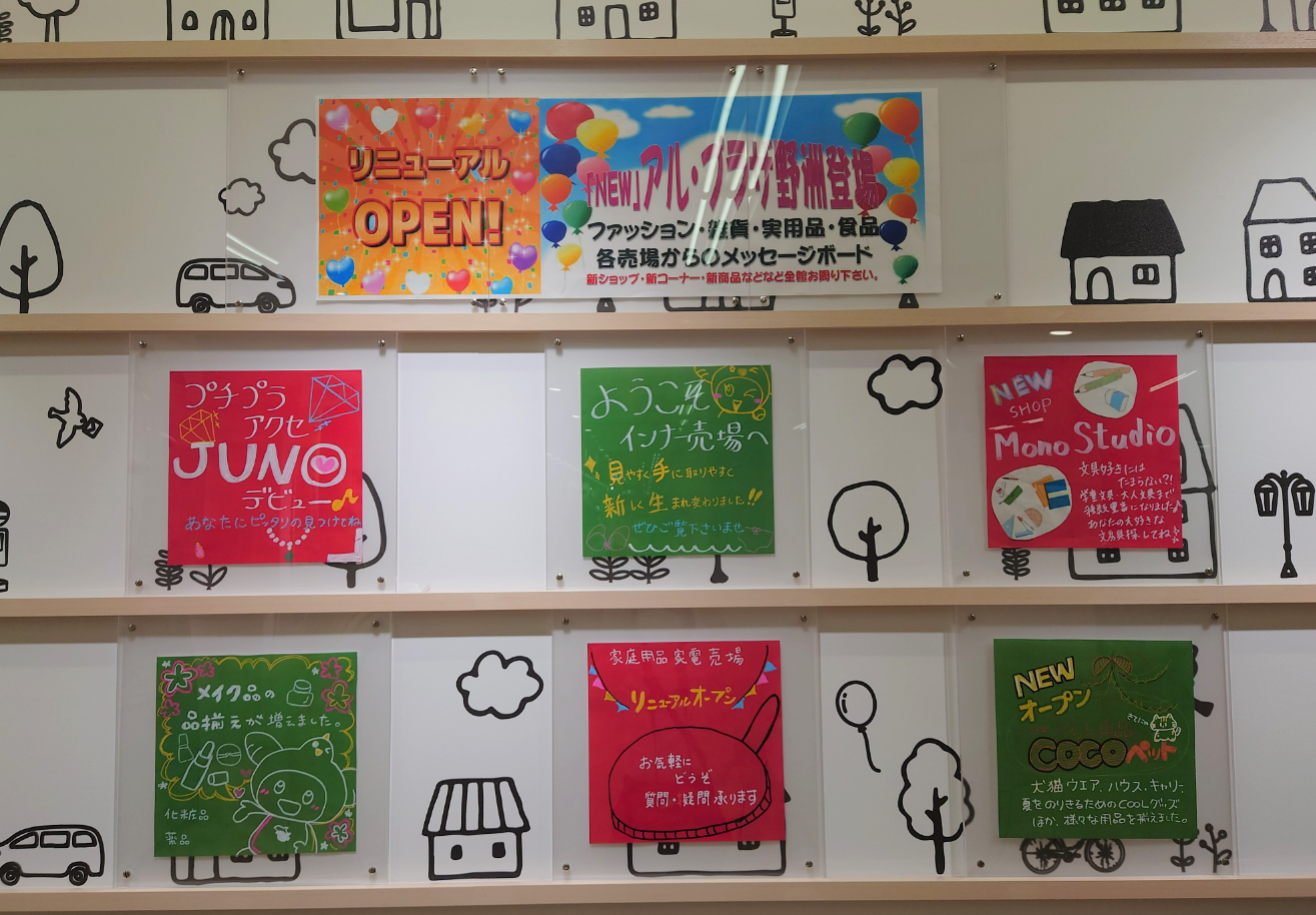 1階セントラルコートには、野洲市を拠点に活躍する写真家 辻村耕司氏の作品を展示し、ご来店のお客様に地元野洲市の四季折々の情景をお楽しみいただきます。また、2階レストスペースには、各売り場、専門店からのメッセージを掲示するメッセージボードを設置しています。