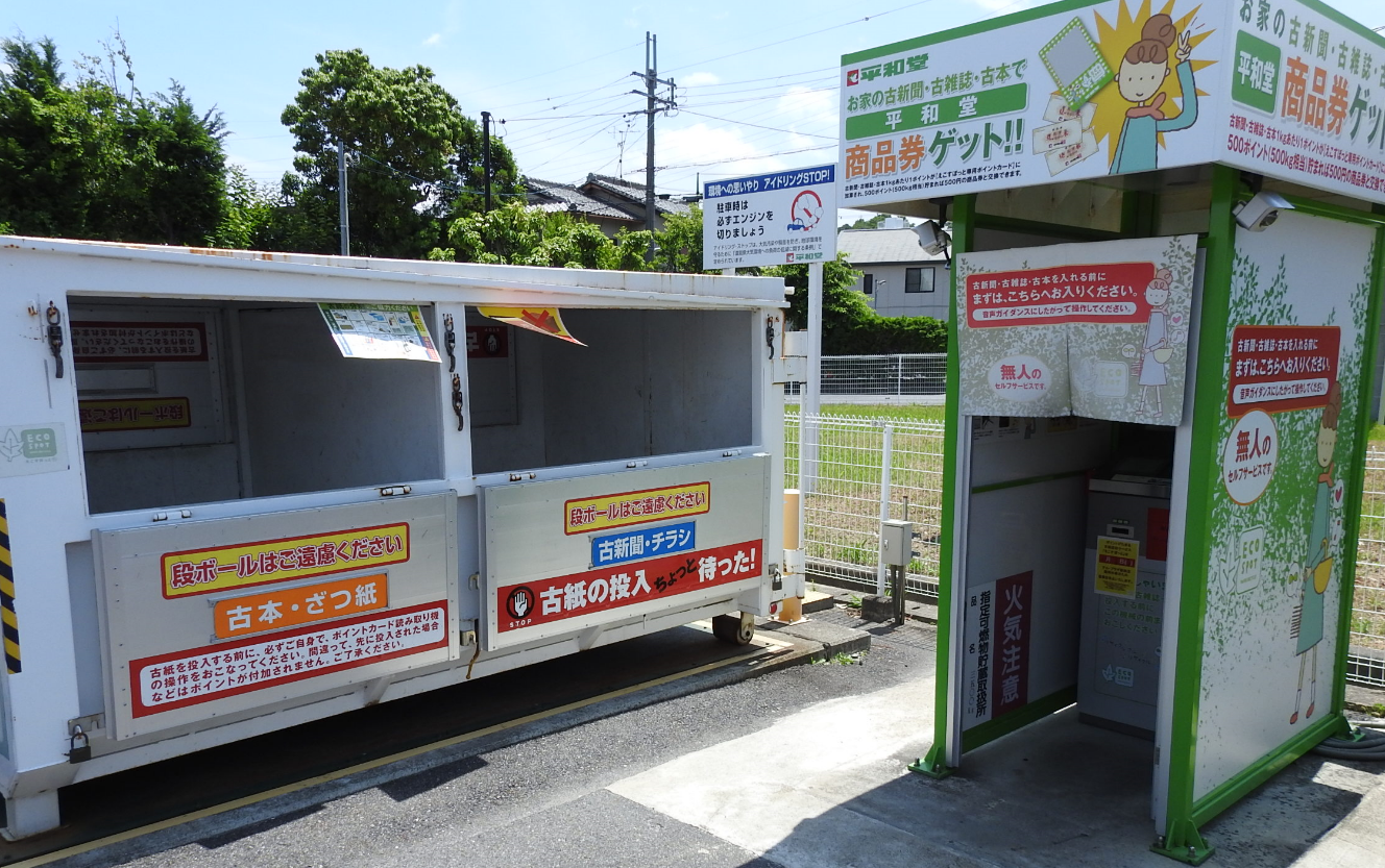 古新聞・古雑誌・古紙を収集しています。重さに応じて平和堂商品券と交換できるポイントをお付けします。