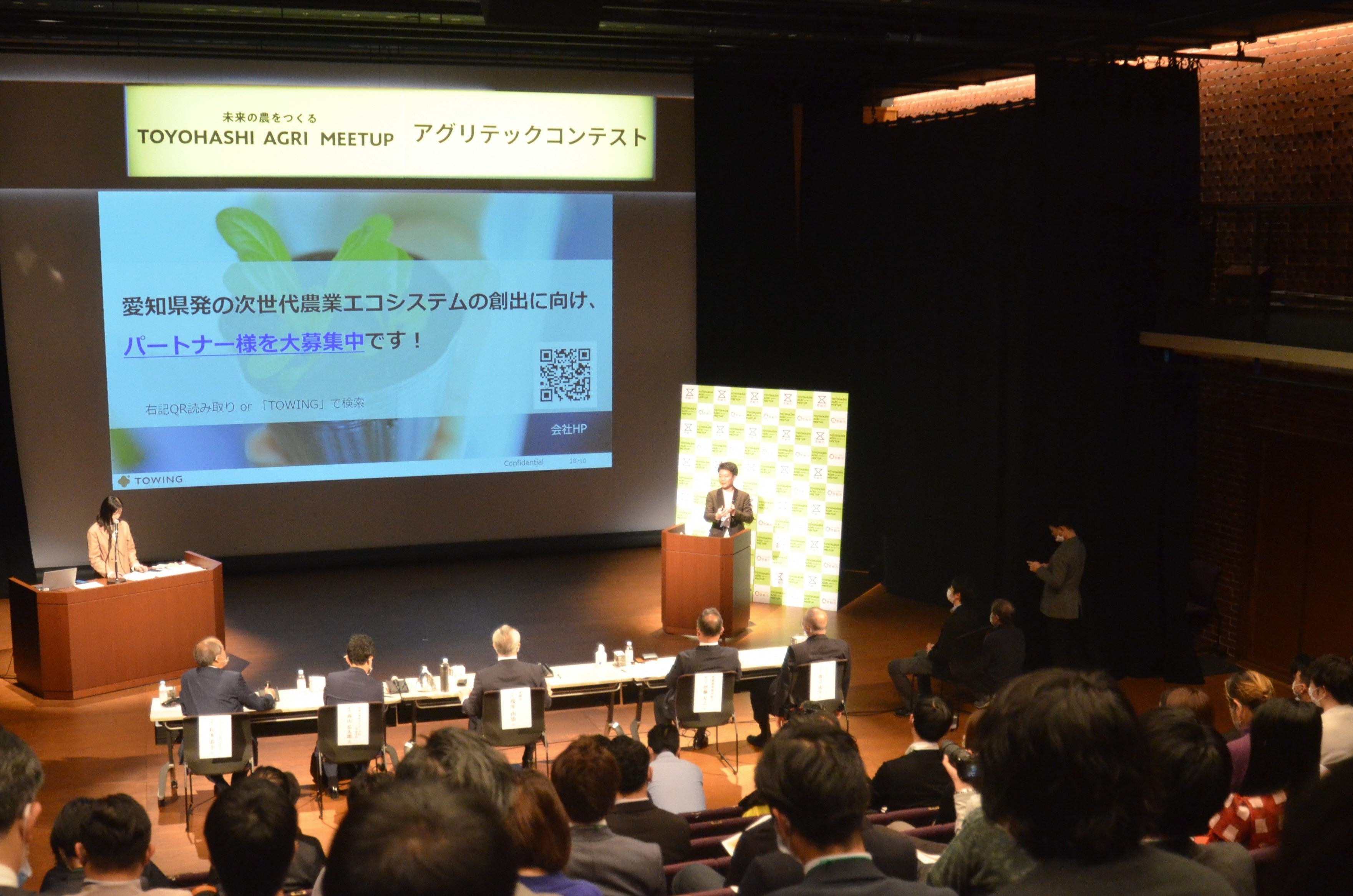 各社は、7分の持ち時間で製品や取り組みなどについて説明し、審査員を務めた豊橋市の浅井由崇市長やJA豊橋の伊藤友之組合長、豊橋技術科学大学の高山弘太郎教授、専門家から質問を受けました。