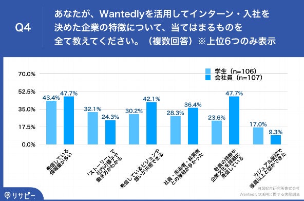 【Wantedlyでインターンを決めた学生・入社を決めた会社員に調査】約5割がWantedly上で「発信している情報量」が多い企業に入社