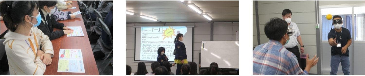 日本の交通ルールや自転車の乗り方、自転車に乗るときにやってはいけないことを教わりました。地震を想定した避難訓練も実施し、緊急地震速報が出てからの対応を実践しながら机の下に身を隠してセンターの駐車場まで避難をしました。