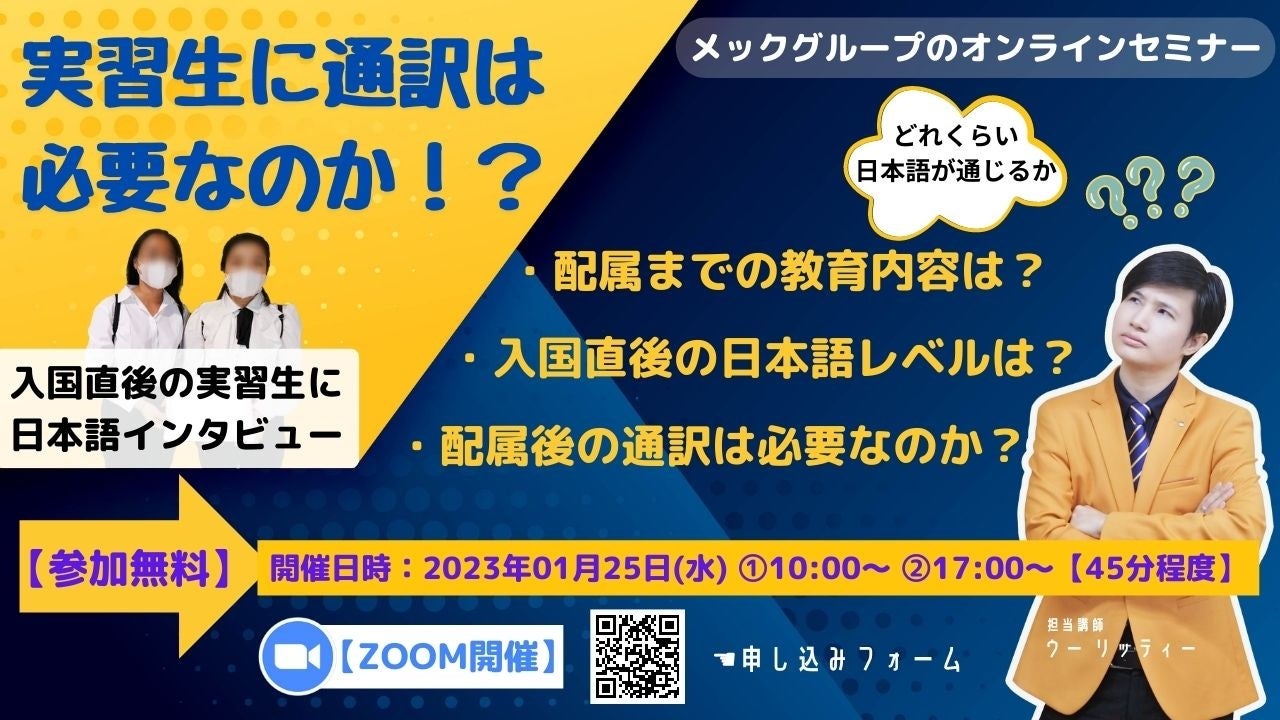 - 【1月25日開催】無料オンラインセミナー「実習生に通訳は必要なのか?」