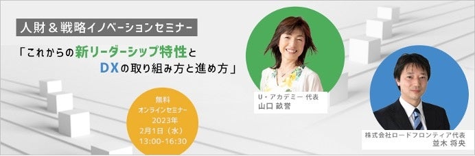 そこで、本セミナーでは、全⽶NLP認定NLPトレーナーでもあり、『外資系1年⽬の教科書』でも著名なU・アカデミー 代表 ⼭⼝ 畝誉氏、The Japan Times「次世代のアジアの経営者100人」に選ばれたことがあり、『成熟社会のビジネスシフト』でも著名なロードフロンティア代表 並木 将央氏を講演者にお迎えして、「VUCA時代のリーダーシップスキル」と「日本企業のDXへの取り組み方」という2つのテーマをとりあげ、企業の変革へのヒントをご提供させていただきます。