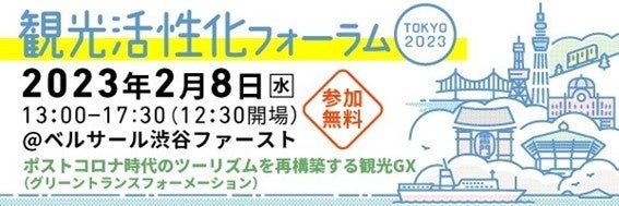 このたび、各地域での観光施策の参考としていただくため、令和5年2月8日(水)に実施する「観光活性化フォーラムTOKYO 2023」の参加申込を1月31日(火)まで受け付けております。ぜひお早めにお申し込みください。※参加無料