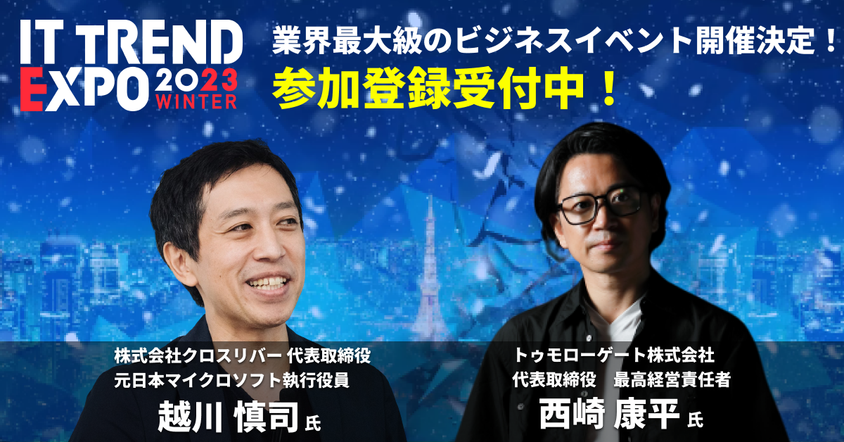 (本社:東京都渋谷区、代表取締役社長:齊藤和馬、以下「Innovation & Co.」)は、第7回目の開催となる業界最大級のオンライン展示会「ITトレンドEXPO2023 Winter」を、2023年2月7日(火)〜 2月10日(金)に開催。