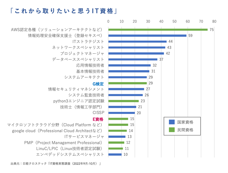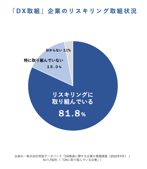 2022年9月の帝国データバンクが行った調査では、「DX取組」企業の8割以上が「リスキリングへの取り組んでいる」と回答。また、そうした中でG検定は、2022年9月の日経クロステック「IT資格実態調査」においても、「取りたい資格」の上位資格として上がるなど注目いただいています。