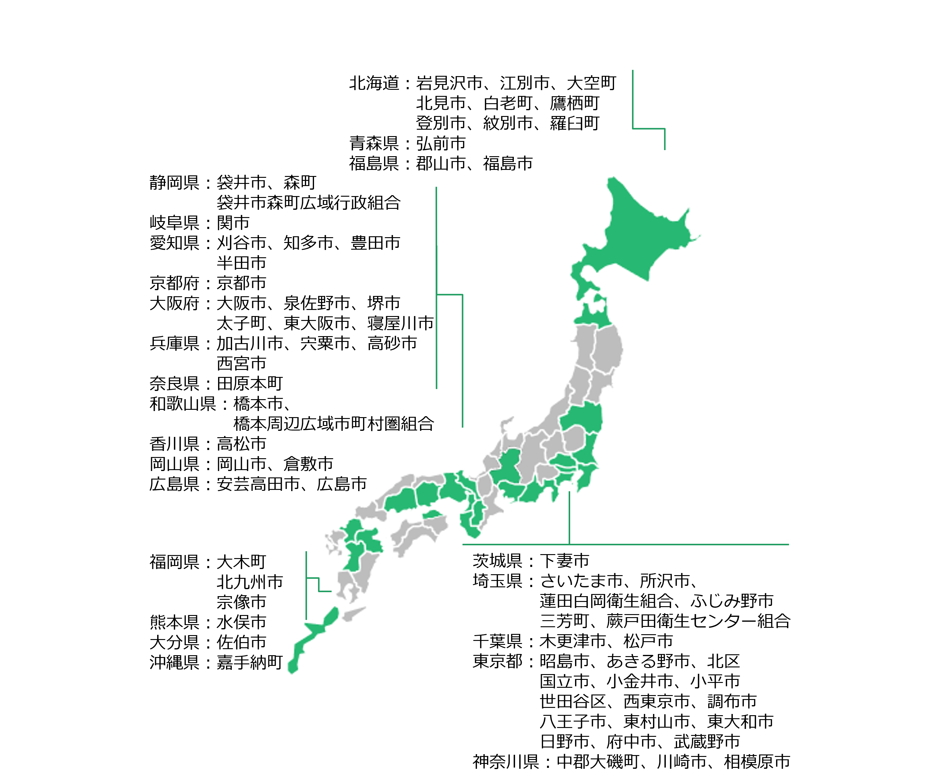 2023年1月24日時点で72箇所の自治体と協定や覚書を締結し連携し、リユースに関する啓発及びリユース事業を推進しております。