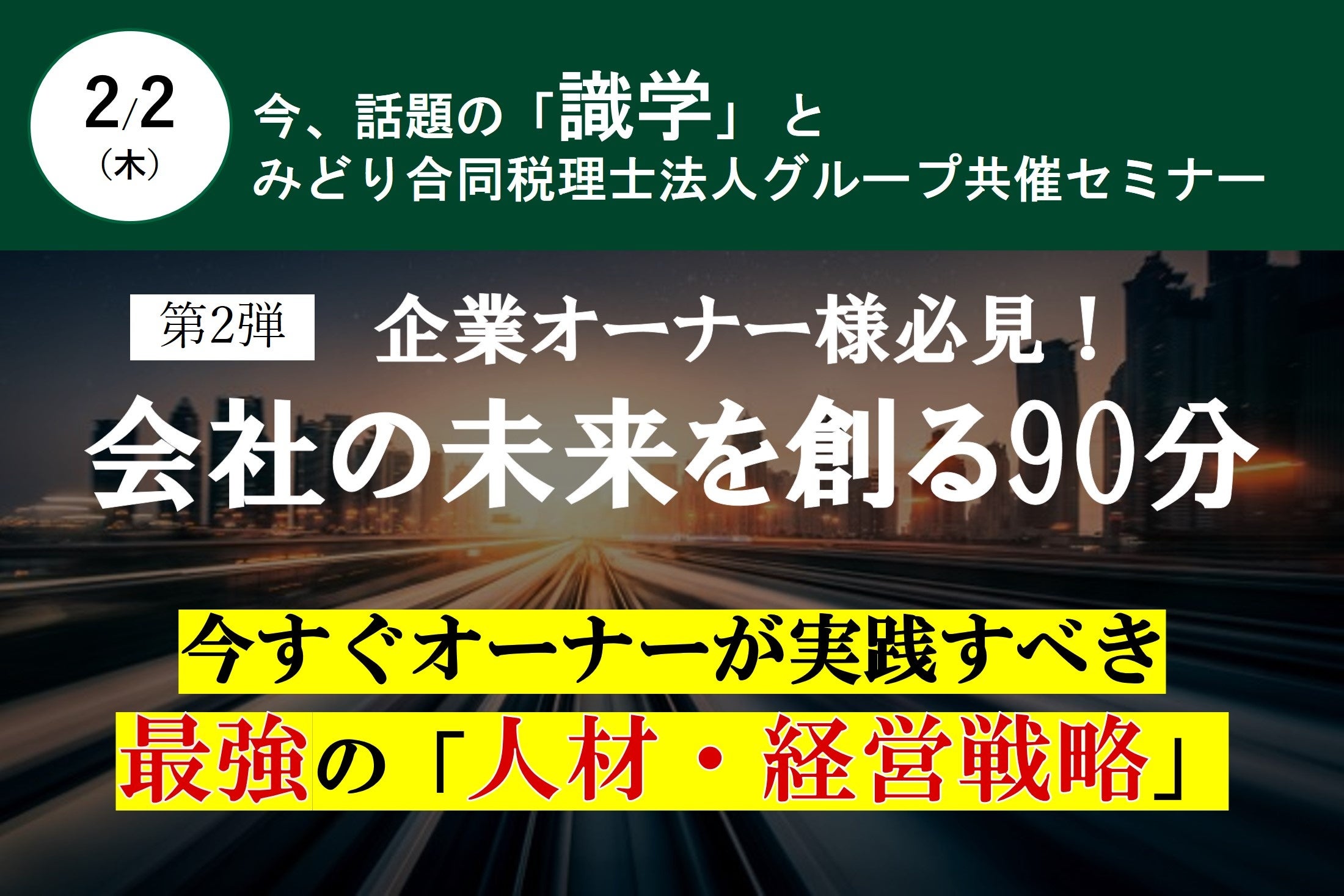 イベント名:企業オーナー様必見!会社の未来を創る90分 第2弾~今話題の識学と共催 今すぐオーナーが実践すべき最強の「人材・経営戦略」~