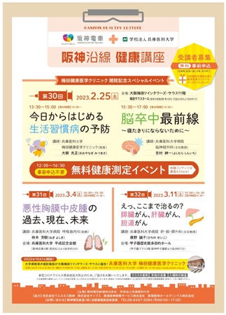 人間ドックに加えて外来医療も提供する「兵庫医科大学 梅田健康医学クリニック」の開院を記念した特別回として、同クリニックのある「大阪梅田ツインタワーズ・サウス」(大阪市北区)において初開催。当日は講座だけでなく、「歩行バランス測定」「筋バランスチェック」など、自由に参加できる「無料健康測定イベント」も実施します。