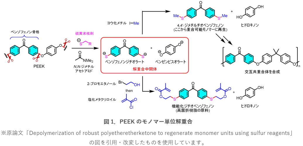 論文タイトル:Depolymerization of robust polyetheretherketone to regenerate monomer units using sulfur reagents