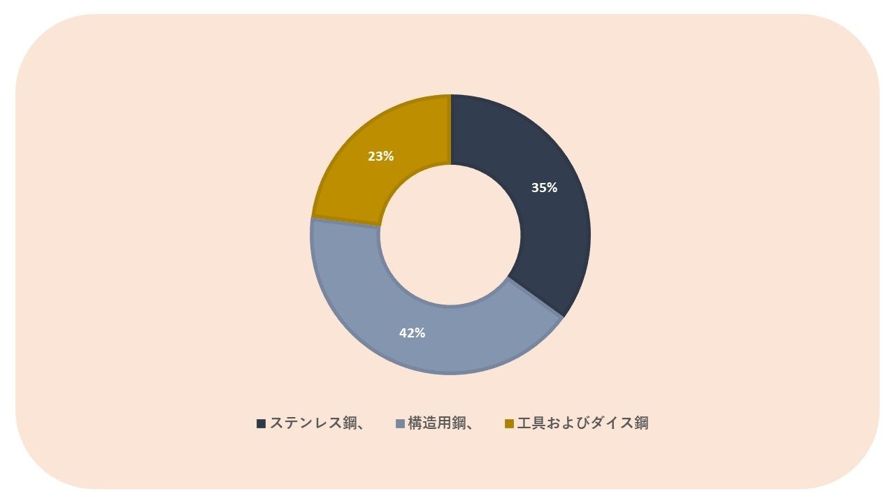 種類によって、市場はステンレス鋼、構造用鋼、工具およびダイス鋼に分かれています。