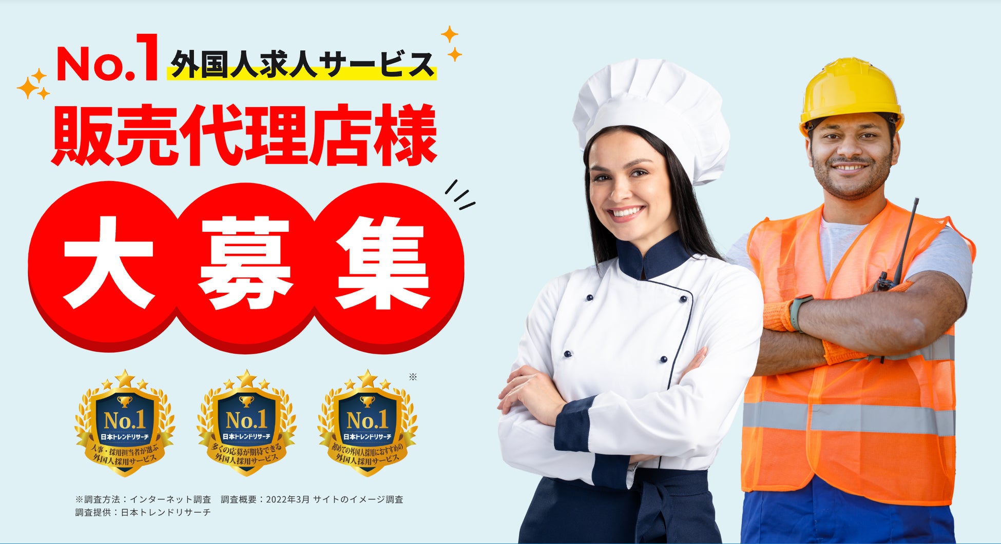 企業の累計契約数は2000社を超え、幅広い業界の取引実績を残しています。こうした状況から、日本企業と在留外国人のマッチングをさらに強化するため、販売代理店プログラムを開始し、販売代理店を募集します。