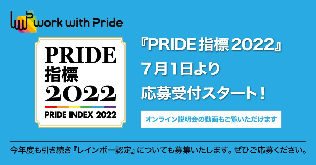 職場における、LGBTQ+に関する取組み評価指標『PRIDE指標 2022』の応募受付を、2022年7月1日(金) から開始いたします。締め切りは、8月31日(水)となります。