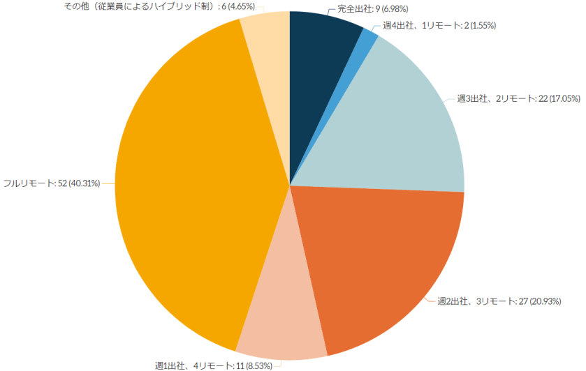 40%がフルリモートを希望しています。また、91%が週2日以上のリモートワークを希望しています。
