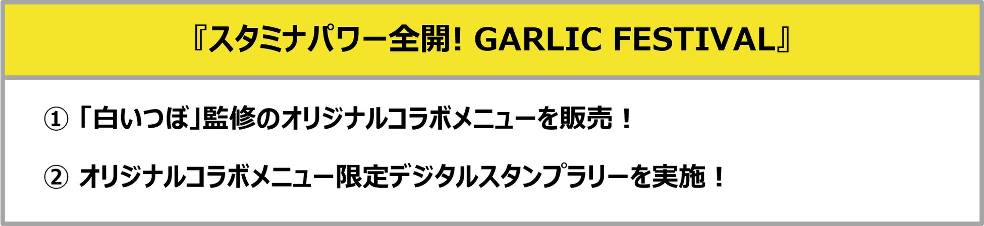 疲労回復や滋養強壮に利く、スタミナパワー全開のオリジナルコラボメニューを、この機会にぜひご賞味ください。キャンペーンの詳細は次頁以降をご参照ください。