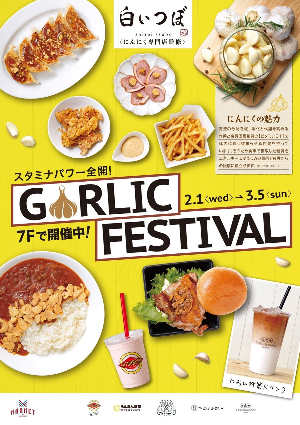 期間中、7階のフードフロア「MAG7」内5店舗にて、「白いつぼ」でも使用しているにんにく・調味料を使ったオリジナルコラボメニューを販売いたします。気になるにおいを緩和するドリンクも販売いたしますので、ぜひお試しください。