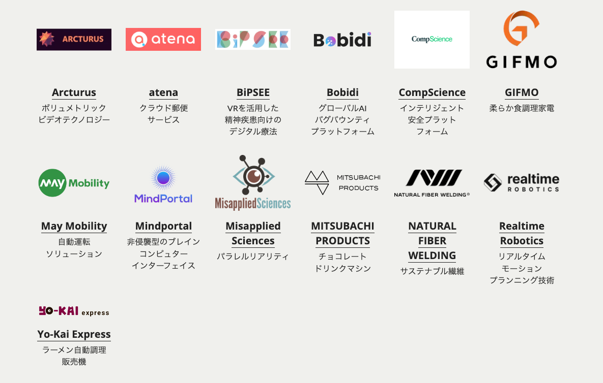 また併設のデモブースには、非侵襲型のブレインマシンインターフェイス(BMI)を使った脳波による操作(Mindportal)、VRを活用した精神疾患向けのデジタル療法の体験(BiPSEE)など15社のスタートアップが参加し、会場で実際に未来を体験いただけます。