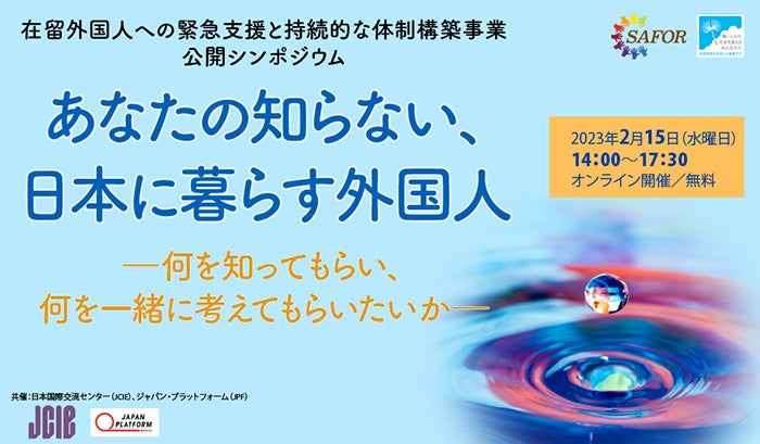 *本シンポジウムは、JPFとJCIEのコンソーシアムに基づき実施している「在留外国人への緊急支援と持続的な体制構築事業」(https://www.jcie.or.jp/japan/report/activity-report-15172/)の一環として行われるものです。