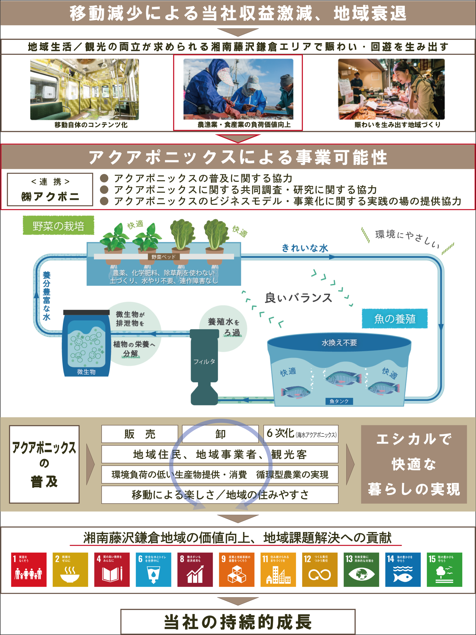 コロナ禍で当社も地域も打撃を受けましたが、SDGsの達成に寄与できるアクアポニックスに対して新たな可能性を感じています。既に藤沢市で農場を展開している株式会社アクポニと連携して事業化を目指し、当社沿線である湘南藤沢鎌倉の地域価値向上を目指して取り組んでまいります。