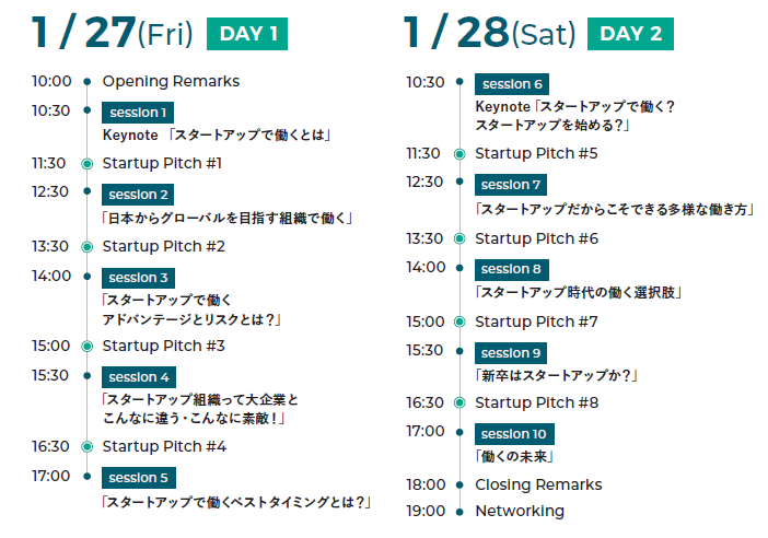 本イベントでは、スタートアップと直接話をすることができるブース出展や、人材採用に関心のあるスタートアップのピッチイベントのほか、スタートアップにおける働き方やキャリア形成をテーマとしたトークセッションを実施します。