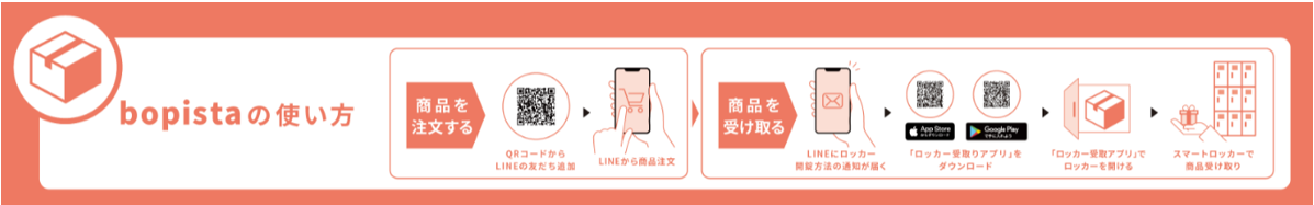 ※ご利用にはBOPISTAのLINE公式アカウントを登録いただき、ロッカーを開錠するためのアプリ「ロッカー受取アプリ」のダウンロードが必要です。