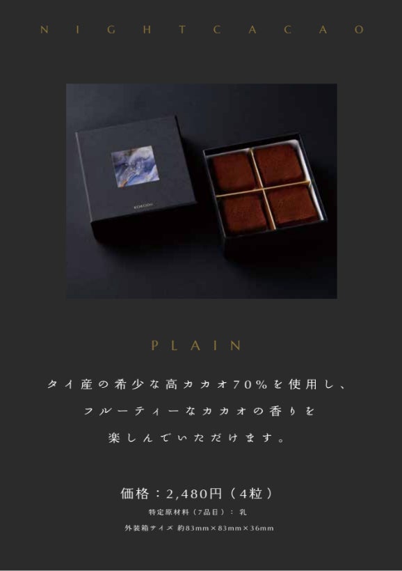 チョコレートは甘いものが苦手な人にはやや敬遠されているため、もっと多くの人に楽しんでもらいたいという思いから、高カカオにこだわりどんな方にも楽しんでいただけるような味わい豊かな仕上げにしています。