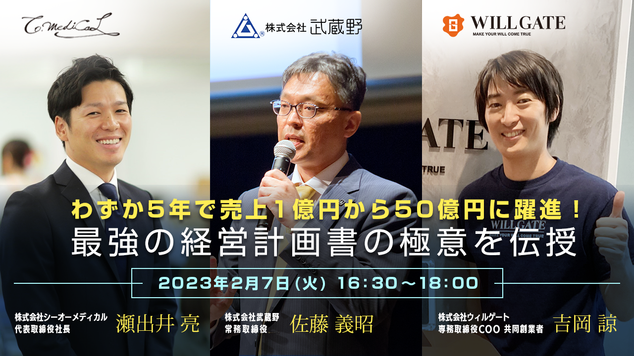 また、シーオーメディカル社の経営戦略の根幹となった経営計画書の作成に携わった武蔵野社 常務取締役 佐藤 義昭さまにもご登壇いただき、経営計画策定から社内への浸透など、経営計画書の極意を解説いただきます。