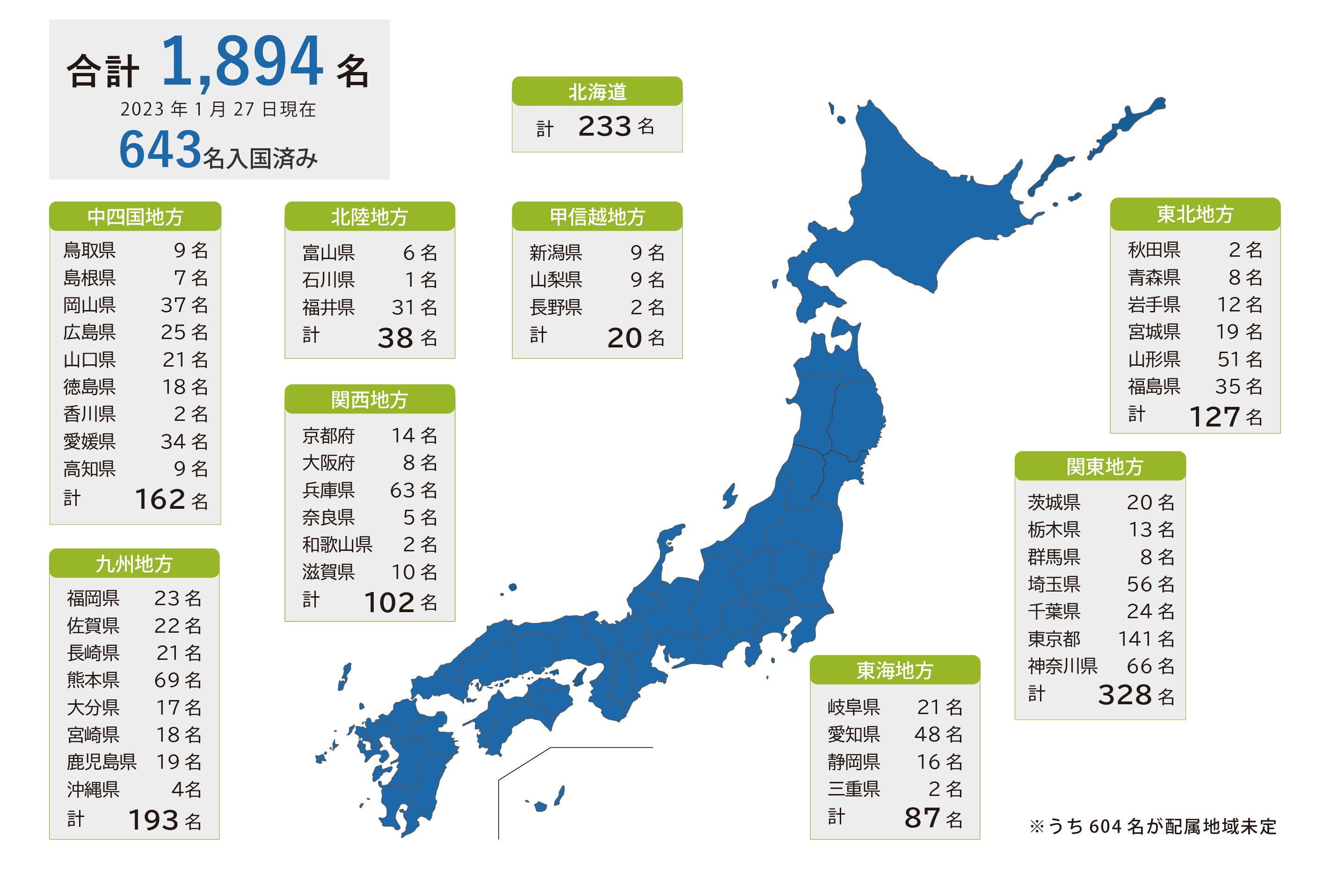 【OUR特定技能人財の紹介 地方別人数一覧】