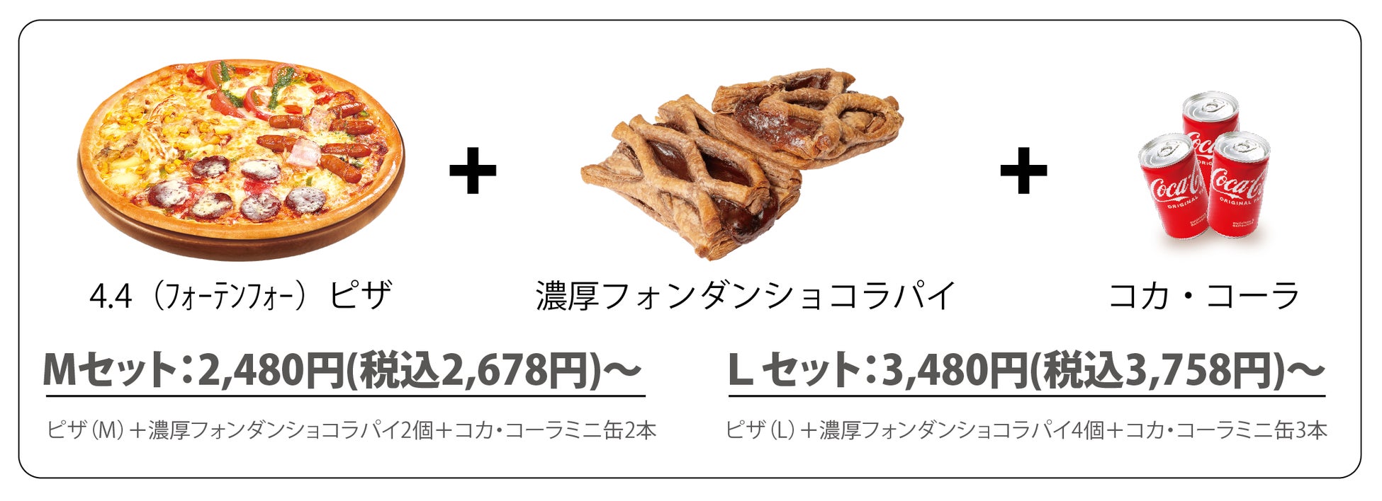 4.4(フォーテンフォー)ピザ+濃厚フォンダンショコラパイ+コカ・コーラ