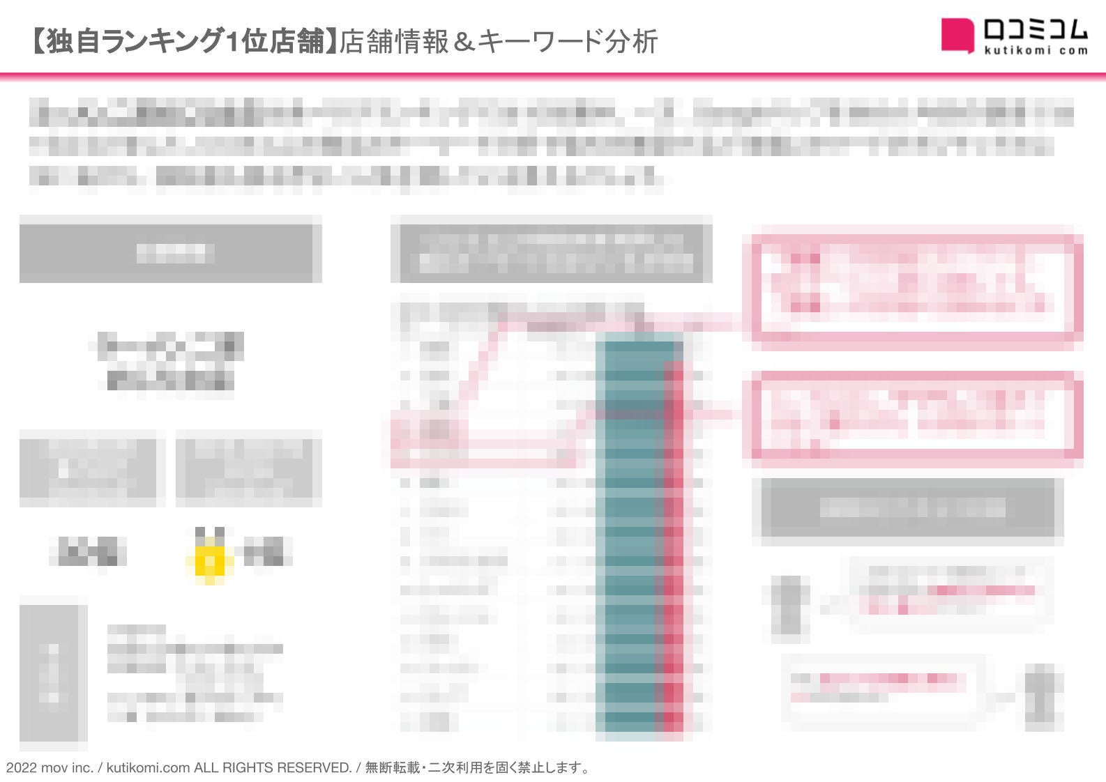 レポートをダウンロード頂くと、ランキング上位店舗別のキーワード分析を行っております。より詳細な情報はダウンロードして是非、ご確認ください。今回のレポートが飲食店を営む皆さまの、ヒントになれば幸いです。