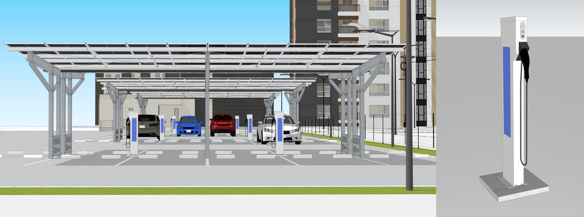 ・クリーンエネルギーを活用したEV充電器の設置も可能