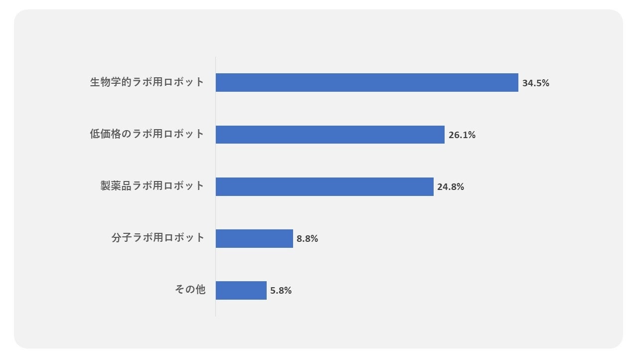 質問:アプリケーション別では、ラボ用ロボットの市場において、より多くの市場シェアを持っているのはどれですか?