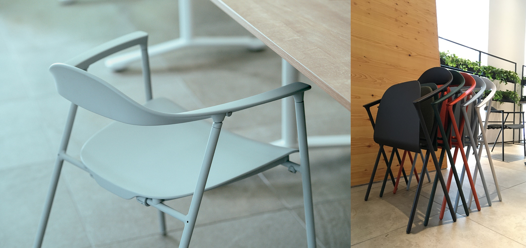 crossa(クロッサチェア)は、曲線美が引き立つスリムなフォルム、軽量で座り心地の良いミーティングチェアです。折りたためるチェアでありながら、高いデザイン性が際立ち、トレンドを意識したシックなインテリアにも溶け込みます。