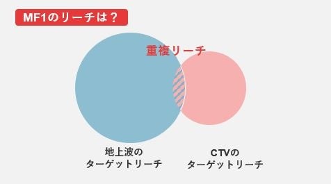 例えばターゲットがMF1だった場合、地上波のリーチ、CTVのリーチ、そして地上波とCTVの重複がどのくらいあるかというクロスメディアでのキャンペーン評価が可能です。