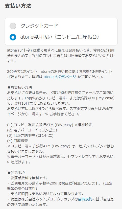 ポケットマルシェ上の注文画面にて、支払い方法を選択する際に、「atone 翌月払い」を選択後、atone上から注文を確定することで、後払いの決済が完了します。詳細は下記ページをご確認ください。